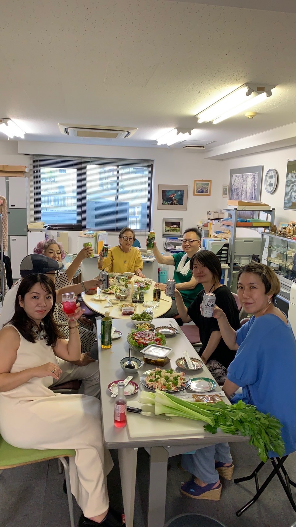 暑い日が続く中、鰻で元気になろうと釜寅の出前を頼みました(^_-)-☆ 八ヶ岳から先生が枝豆、セロリ等々を仕入れて来てくれました🥬 セロリは茎を折ってオリジナルマヨで食べましたけど、そんな食べ方がとっても 美味しかったです🎵 顔が隠れるくらい釜めしにかぶりついてるのは誰でしょうか(笑) みんな元気になって、今年の後半戦頑張りましょう!